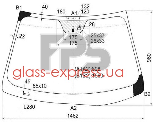 СКЛО ЛОБОВЕ, ЗЕЛЕНЕ, БЛАКИТНИЙ СВІТЛОФІЛЬТР, З КРІПЛЕННЯМ ДАТЧИКА ВОЛОГОСТІ/СВІТЛА, З КРІПЛЕННЯМ ДЗЕРКАЛА, З VIN-ВІКНОМ, 1465*962
