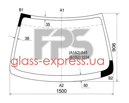 СКЛО ЛОБОВЕ, ЗЕЛЕНЕ, БЛАКИТНИЙ СВІТЛОФІЛЬТР, 1500*845