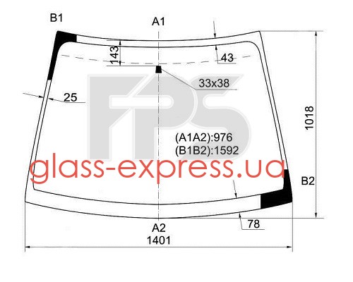 СКЛО ЛОБОВЕ, ЗЕЛЕНЕ, З КРІПЛ.ДЗЕРК., 1404*1021 (-02/07)