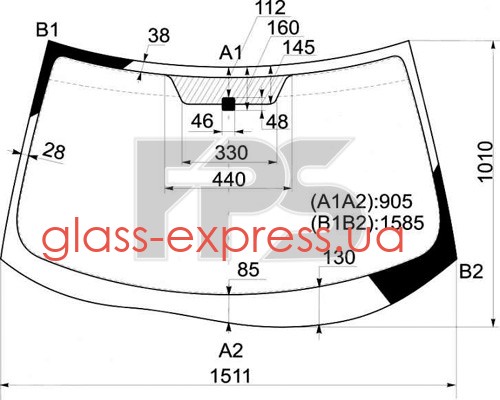 СКЛО ЛОБОВЕ, ЗЕЛЕНЕ, З КРІПЛ.ДЗЕРК., 1514*1013