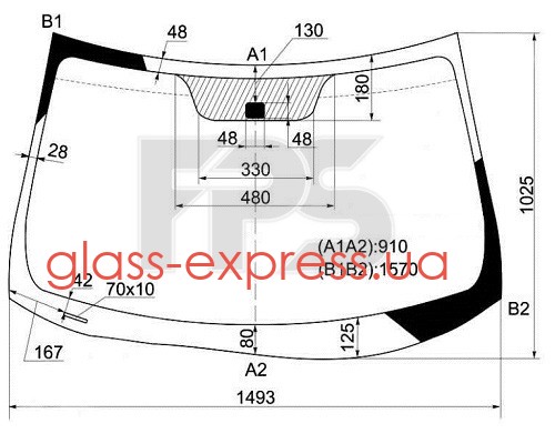 СКЛО ЛОБОВЕ, ЗЕЛЕНЕ, З КРІПЛЕННЯ ДЗЕРКАЛА, З VIN-ВІКНОМ, 1496*1028