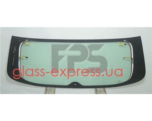 СКЛО ЗАДНЄ, ЗЕЛЕНЕ, З ОБІГРІВОМ, З АНТЕНОЮ, 1 ОТВІР, 1365*577 (АНТЕНА ЗВЕРХУ ЗЛІВА ТА СПРАВА(2 КЛЕМИ))