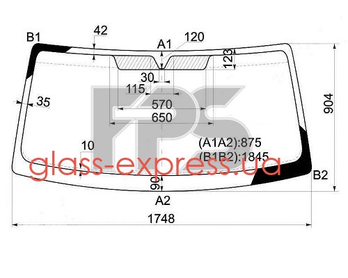 СКЛО ЛОБОВЕ, ЗЕЛЕНЕ, БЛАКИТНИЙ СВІТЛОФІЛЬТР, З КРІПЛЕННЯМ ДЗЕРКАЛА, 1748*878